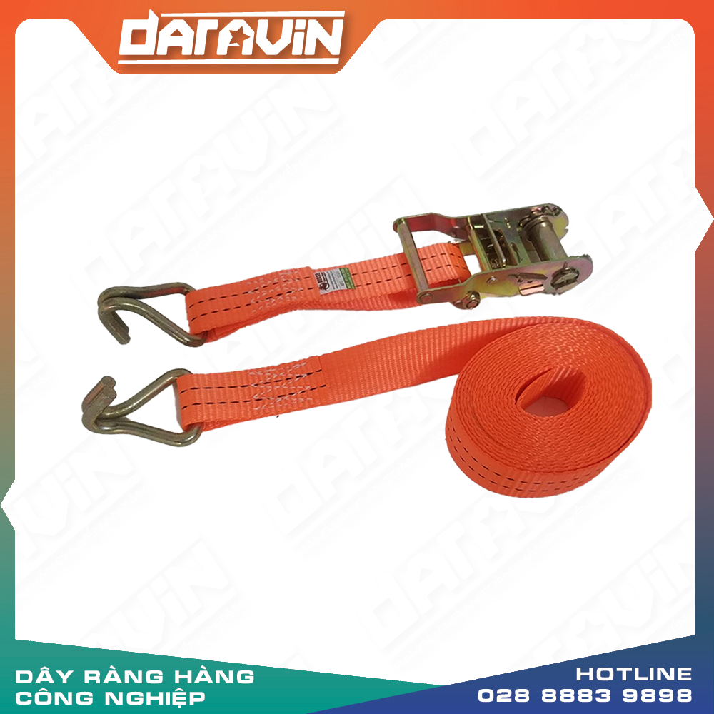 - Dây cảo chằng hàng bản 25mm –1500kg móc J rất linh hoạt cho nhiều hàng hóa nặng và lớn, có móc ở hai đầu.