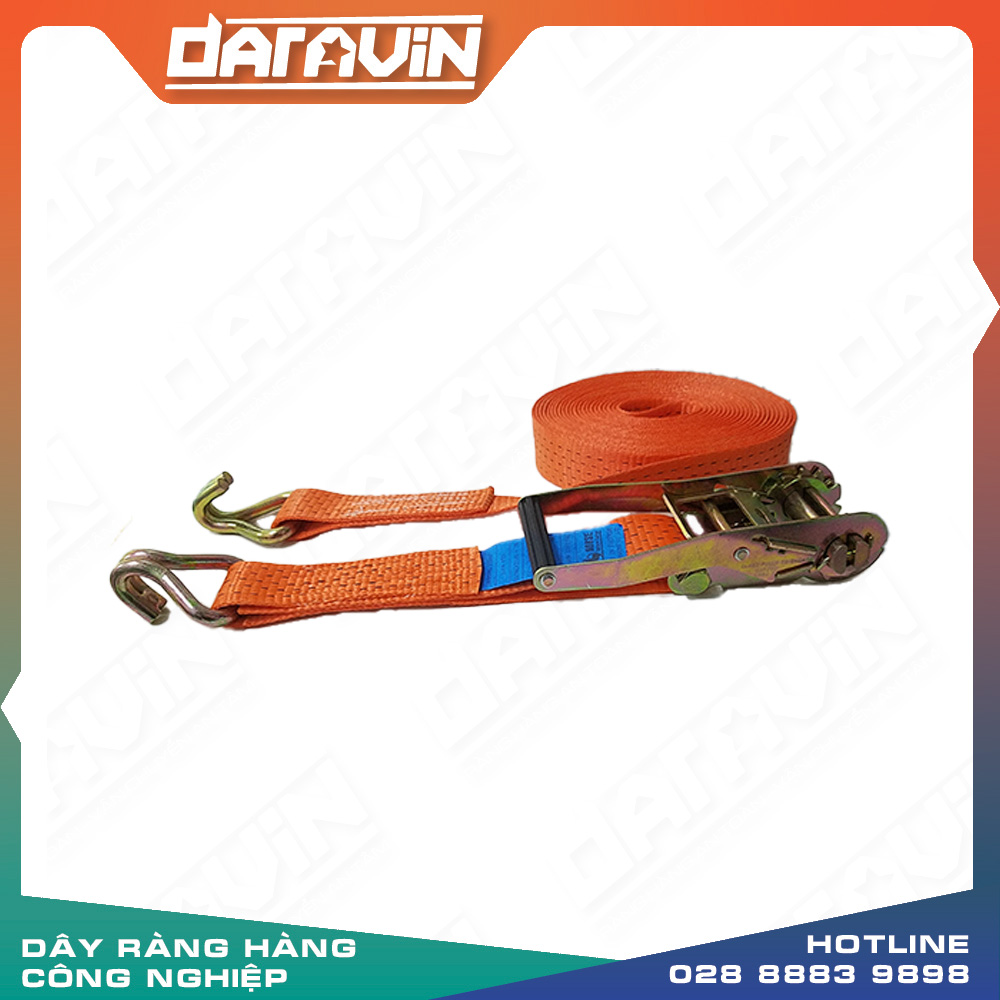 - Dây cảo chằng hàng bản 50mm – 5000kg móc J rất linh hoạt cho nhiều hàng hóa nặng và lớn, có móc ở hai đầu.