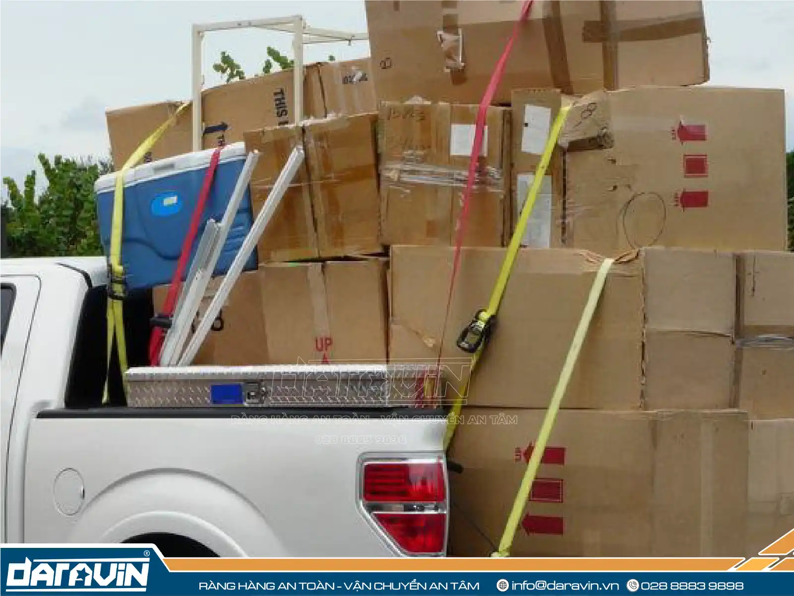 Tùy vào tải trọng hàng hóa mà hàng được ràng bằng nhiều cách khác nhau