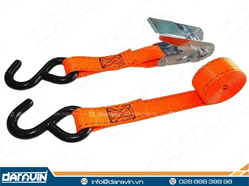 Đó là loại dây chằng được làm từ 100% sợi Polyester, kết hợp với một cơ cấu khóa tăng đơ (ratchet) hoặc khóa cam (cam buckle) để siết và cố định dây. Đối với xe máy, loại phổ biến và an toàn nhất là dây tăng đơ bản nhỏ (25mm).
