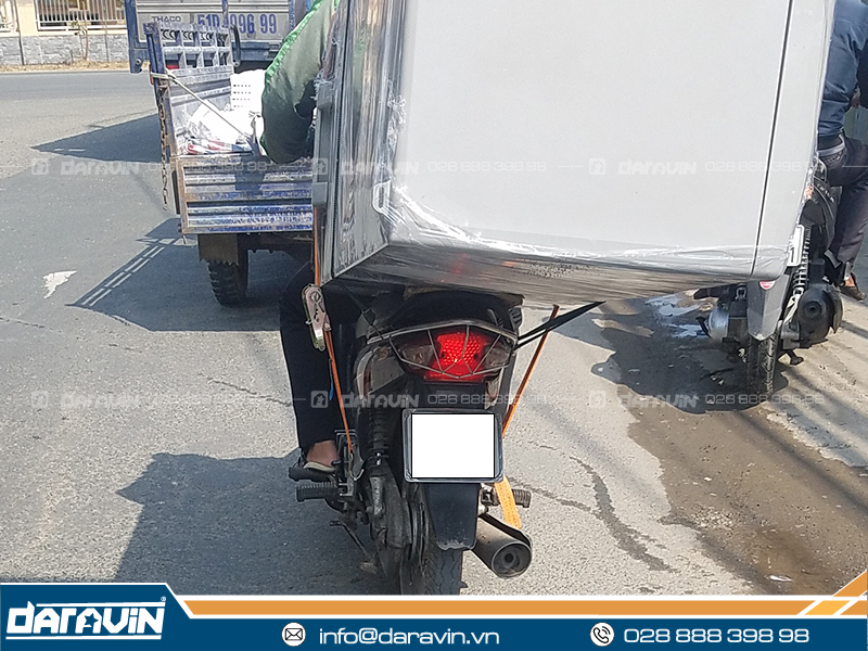 Sử dụng dây tăng đơ trên xe máy cần sự tinh tế, vì nếu siết quá mạnh có thể làm bẹp thùng hàng.