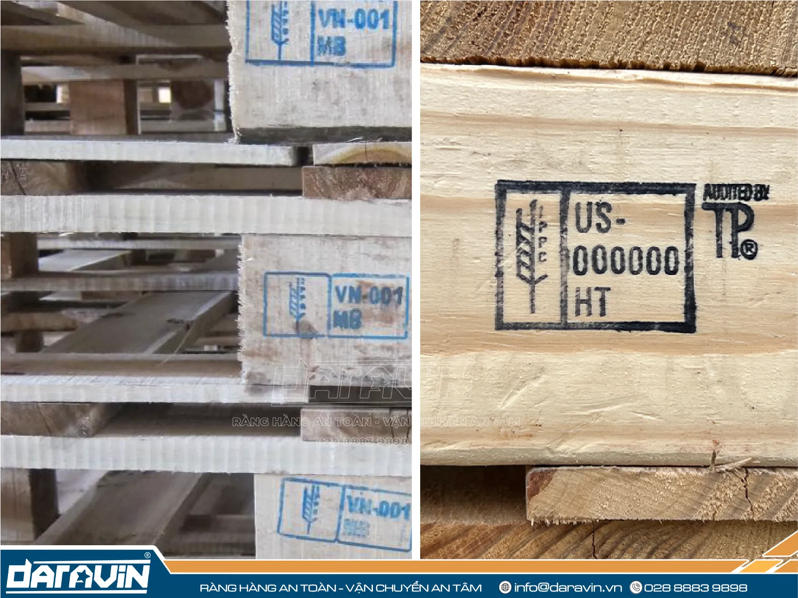Dấu hiệu nhận biết: Pallet sau khi xử lý sẽ được đóng dấu "HT" (Heat Treated).