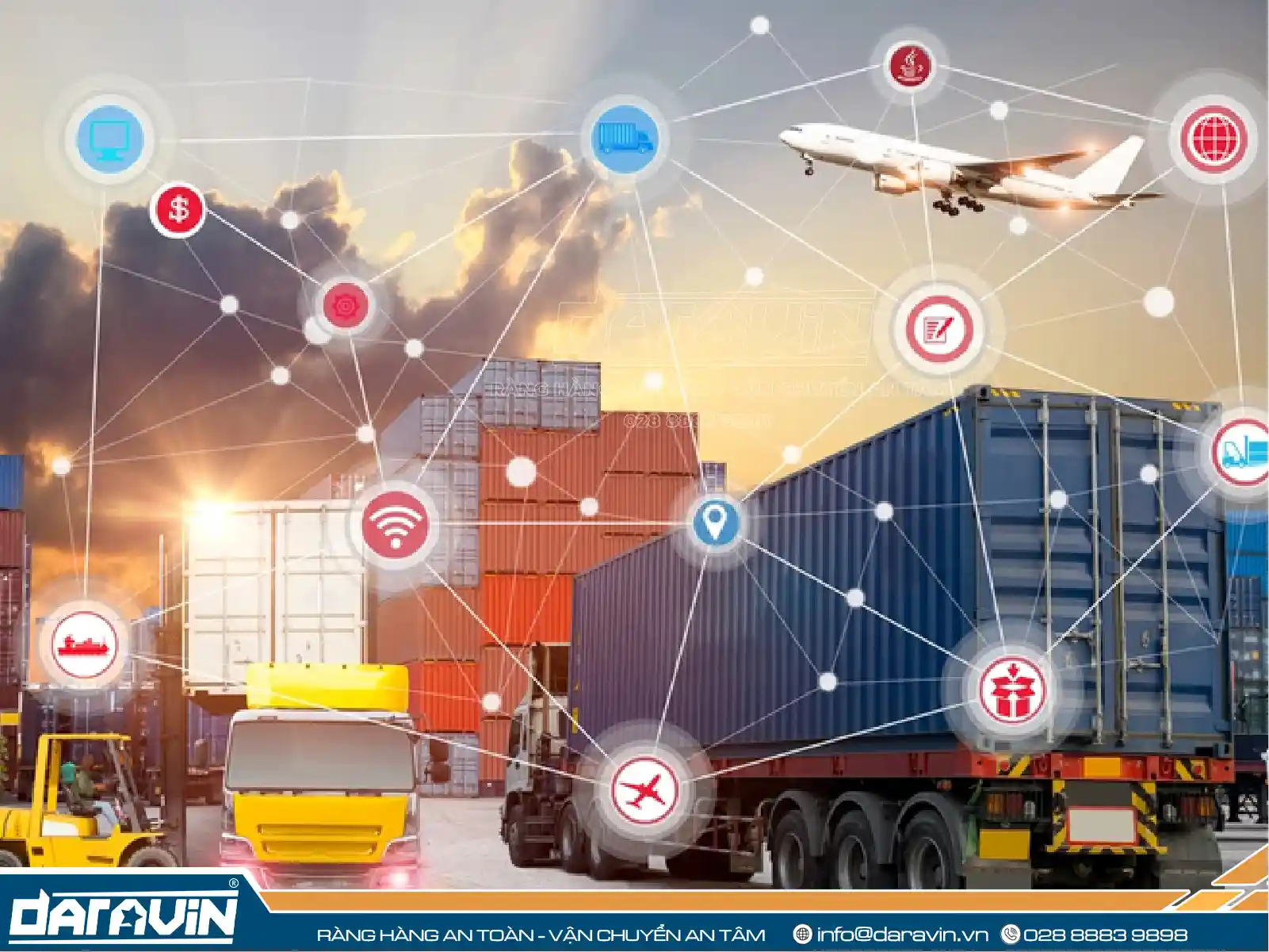 Một hệ thống logistics hiệu quả đòi hỏi sự an toàn và nguyên vẹn của hàng hóa trong suốt quá trình vận chuyển và lưu kho. Tại DARAVIN, chúng tôi chuyên cung cấp các giải pháp chằng buộc và bảo vệ hàng hóa chuyên nghiệp như dây tăng đơ, lưới quấn pallet,...giúp tối ưu hóa một mắt xích quan trọng trong chuỗi logistics của bạn. Hãy truy cập daravin.vn để tìm hiểu thêm về các sản phẩm an toàn hàng đầu.