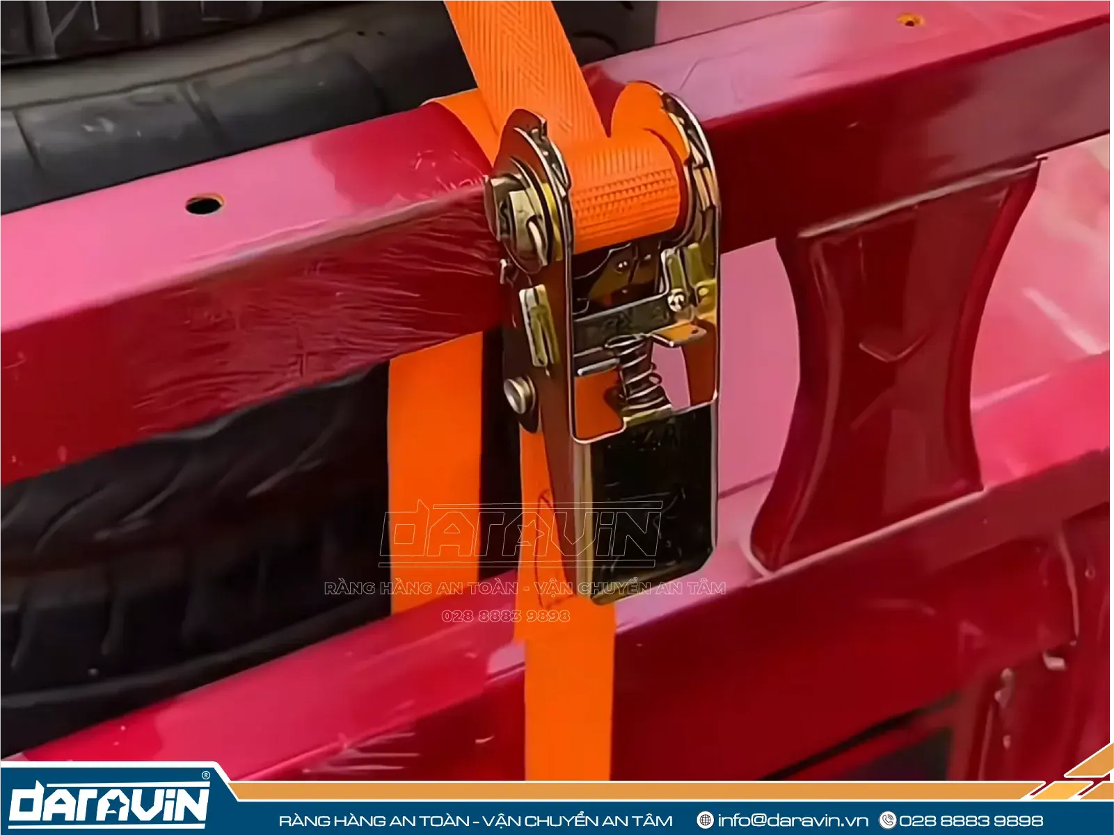 An toàn: Siết đủ lực đảm bảo hàng hóa không bị xê dịch khi phanh gấp, cua, hoặc gặp đường gồ ghề.
