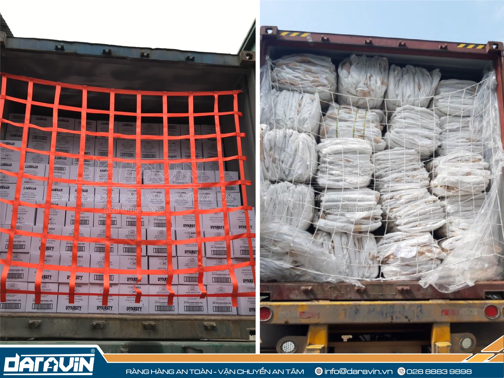 Khi vận chuyển hàng bằng container, lưới chắn là thiết bị bảo vệ không thể thiếu