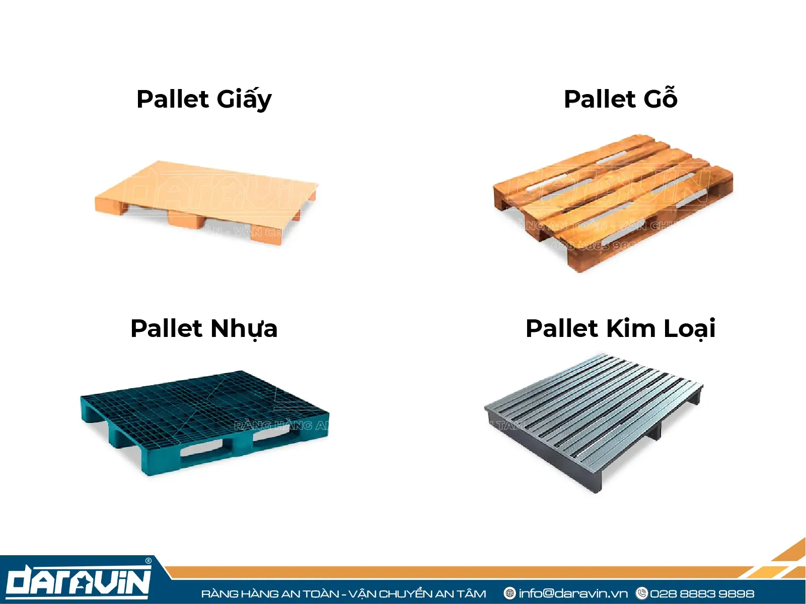 Pallet được sản xuất từ nhiều loại vật liệu khác nhau và có cấu tạo đa dạng để phù hợp với từng mục đích sử dụng, môi trường hoạt động và ngân sách của doanh nghiệp.