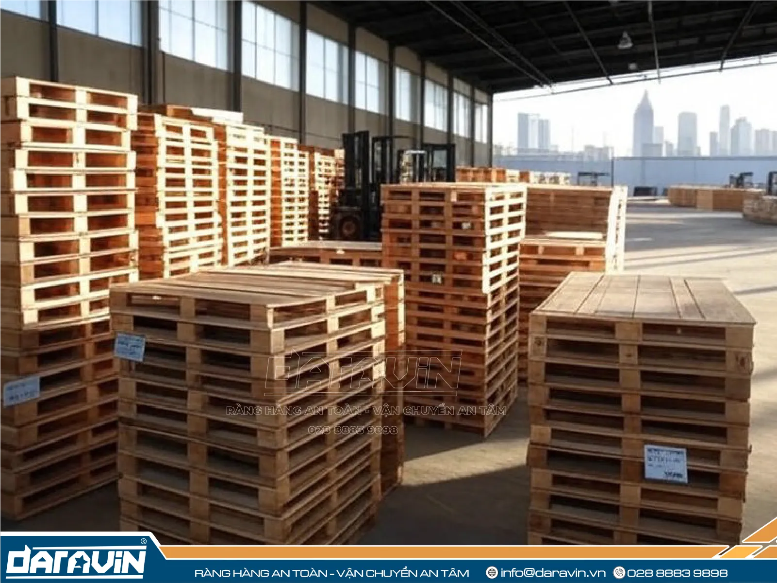 Pallet gỗ là vật tư phổ biến trong kho vận